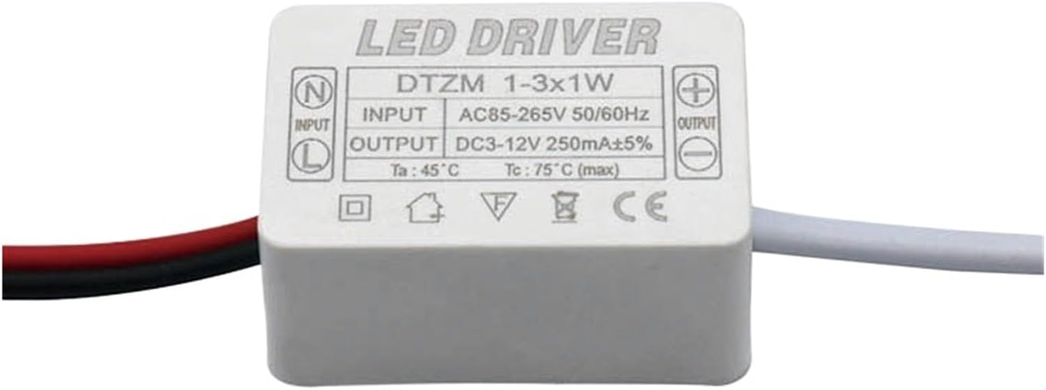 Lamps & Lighting1-3W LED DriverInput voltage: 85-265VDimensions: 41*22*19 mm (1.61*0.87*0.75 in)AC230V load test output voltage: DC3-12VOutput current: 250mA/300mAAC230V no-load test: output voltage: DC27V±10%Load (no LED lamp bead test voltage)(Danger! Do not test without load, the test data will be inaccurate.)3-5W LED DriverInput voltage: 85-265VDimensions: 41*22*19 mm (1.61*0.87*0.75 in)AC230V load test output voltage: DC9-18VOutput current: 250mA/300mAAC230V no-load test: output voltage: DC29V±10%Load (no LED lamp bead test voltage)(Danger! Do not test without load, the test data will be inaccurate.)4-7W LED DriverInput voltage: 85-265VDimensions: 51*29*21 mm (2.0*1.14*0.83 in)AC230V load test output voltage: DC12-26VOutput current: 250mA/300mAAC230V no-load test: output voltage: DC43V±10%Load (no LED lamp bead test voltage)(Danger! Do not test without load, the test data will be inaccurate.)8-12W LED DriverInput voltage: 85-265VDimensions: 61*31*21 mm (2.4*1.22*0.83 in)AC230V load test output voltage: DC24-42VOutput current: 250mA/300mAAC230V no-load test: output voltage: DC59V±10%Load (no LED lamp bead test voltage)(Danger! Do not test without load, the test data will be inaccurate.)12-18W LED DriverInput voltage: 85-265VDimensions: 83*31*21 mm (3.27*1.22*0.83 in)AC230V load test output voltage: DC36-63VOutput current: 250mAAC230V no-load test: output voltage: DC85V±10%Load (no LED lamp bead test voltage)(Danger! Do not test without load, the test data will be inaccurate.)18-25W LED DriverInput voltage: 85-265VDimensions: 84*31*21 mm (3.31*1.22*0.83 in)AC230V load test output voltage: DC54-80VOutput current: 250mA/300mAAC230V no-load test: output voltage: DC108V±10%Load (no LED lamp bead test voltage)(Danger! Do not test without load, the test data will be inaccurate.)25-36W LED DriverInput voltage: 85-265VDimensions: 84*31*21 mm (3.31*1.22*0.83 in)AC230V load test output voltage: DC75-126VOutput current: 250mA/300mAAC230V no-load test: output voltage: DC182V±10%Load (no LED lamp bead test voltage)(Danger! Do not test without load, the test data will be inaccurate.)Type: NoneFeatures: Fully isolated driverOutput signal: DCInput signal: ACInput voltage: AC85-265VDuration: 3 yearsMaterial: Plastic and ChipOrigin: Mainland ChinaProduct Type: Lighting TransformerPower: 1-3W/3-5W/4-7W/8-12W/12-18W/18-25W/25-36WOutput current: 250mA/300mA1-3W Output voltage: DC3-12V3-5W Output voltage: DC9-18V4-7W Output voltage: DC12-26V8-12W Output voltage: DC24-42V12-18W Output voltage: DC36-63V18-25W Output voltage: DC54-80V25-36W Output voltage: DC75-126V1-3W size: 41*22*19 mm (1.61*0.87*0.75 inches)3-5W size: 41*22*19mm (1.61*0.87*0.75 inches)4-7W Size: 51*29*21mm (2.0*1.14*0.83 inches)8-12W Size: 61*31*21mm (2.4*1.22*0.83in)12-18W Size: 83*31*21mm (3.27*1.22*0.83in)18-25W size: 84*31*21 mm (3.31*1.22*0.83 inches)25-36W Size: 101*34*21mm (3.98*1.34*0.83in)