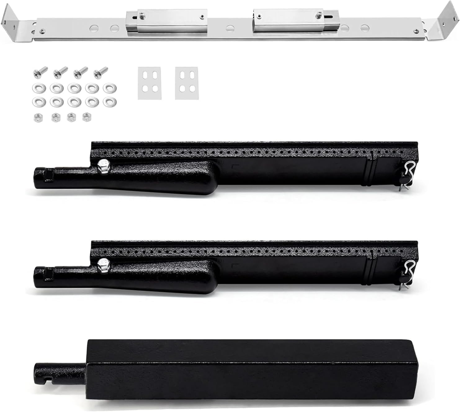 Compatible Models✅Grill replacement parts for Charbroil 463240904 463251605 463251505 463252105 463261406 463240804 463241804 463252005 463247004 463261306 463241704.✅Grill parts for Kirkland Signature Front Avenue, 463230703.✅Replacement parts for Thermos 461246804 461230404 461230403.Product Specification➤Grill Grate✔ Dimensions: 16 15/16" x 8 5/16" for each, 16 15/16" x 24 15/16" for total✔ Material: Cast Iron➤Burner✔ Dimensions: 13 7/8" x 2 1/4"✔ Material: Cast Iron➤Heat Plate✔ Dimensions: 15" x 4 3/16"✔ Material: Stainless Steel➤80012481 Main Burner Support Bracket Rail✔ Dimensions: It is approximately equal to 25 inches and adjustable from 0.5 to 2 inches. ✔ Material: Stainless steel.Packaging Includes✔ 1-Pcs Main Burner Support Bracket Rail✔ 3-Pcs Grill Grate.✔ 2-Pcs 463240904 heat plates✔ 3pcs charbroil 463240904 burners replacement